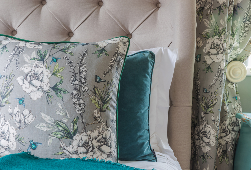 As standard, Grandiflora is printed onto a Linen/Viscose mix which gives the fabric a beautiful handle and drape. It is such a tactile fabric with the added bonus of being difficult to crease. For a more bold look, we can print the Grandiflora onto our 100% linen which really makes the colours and pattern leap off the fabric.