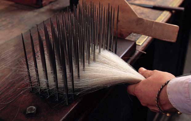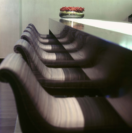 The knowledge of the age and complexity of the manufacturing process, which struggles to source sufficient hair locally nowadays, importing it from countries that still routinely use working horses, coupled with the unique texture, and pleasing limitations of width, make this a material that requires thought and skill to use to its fullest potential. It is also, however, tough and resilient, hence its appearance in public places – bar stools, the seats at the Bath Pump Room – it has strength and tremendous utility, as well as taking colour fantastically well, as below in this screen by Ochre.